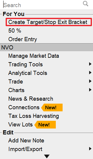 portfolio里的持仓,右键,点击“Create Target/Stop Exit Bracket”