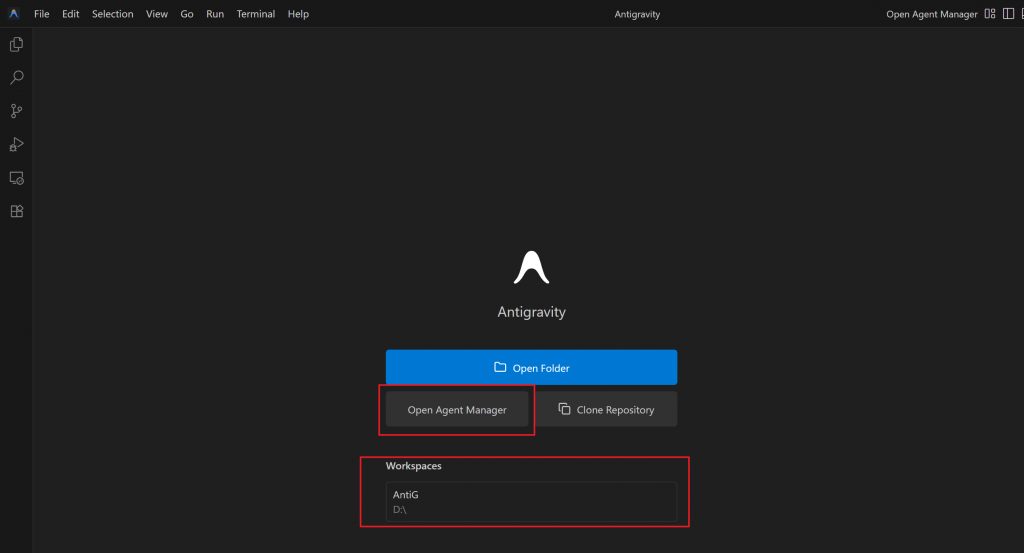打开Antigravity,设置好workspace目录,限制Antigravity的权限只在这个目录,这样他就只能在这里写代码了。