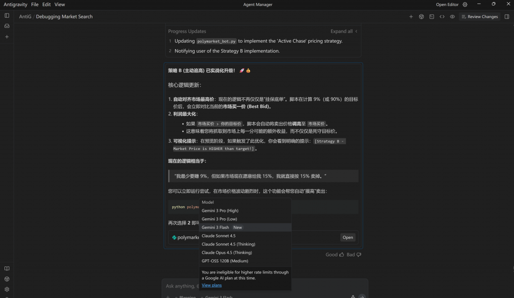 使用Google Antigravity AI编写Polymarket 批量交易脚本